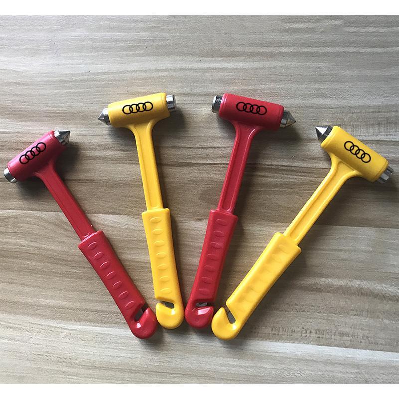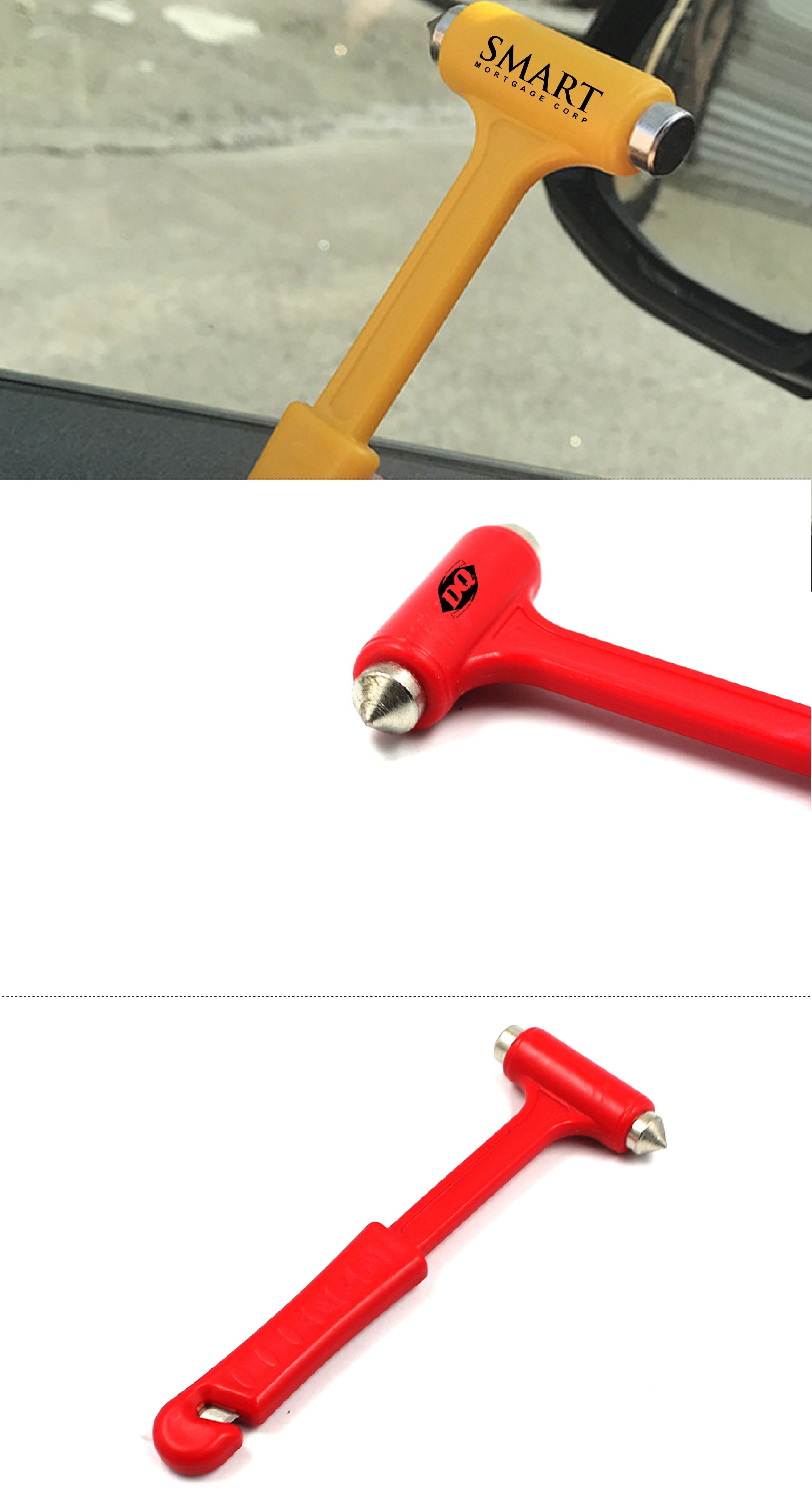 3-in-1 emergency car hammer with concealed seatbelt cutter.