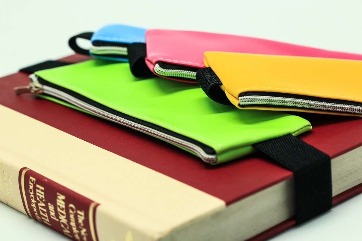 Secure your books and notebooks with this durable band cases. It comes with a pouch to secure personal pens, receipts and other personal items. It has assorted colours of yellow, pink, neon green and sky blue.
