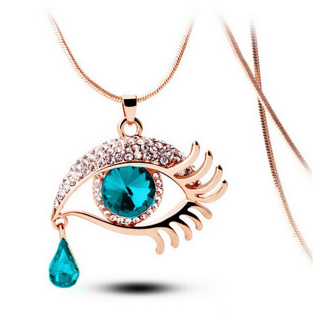 Fashion Magic Eye Crystal Tear Drop Eyelashes Necklace Long Sweater Chain