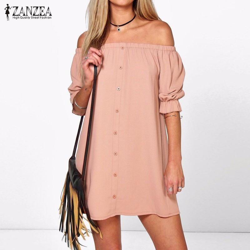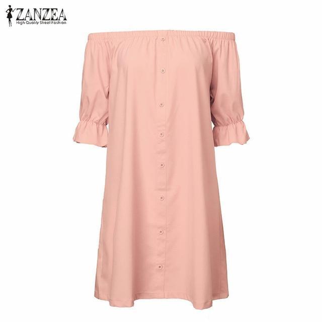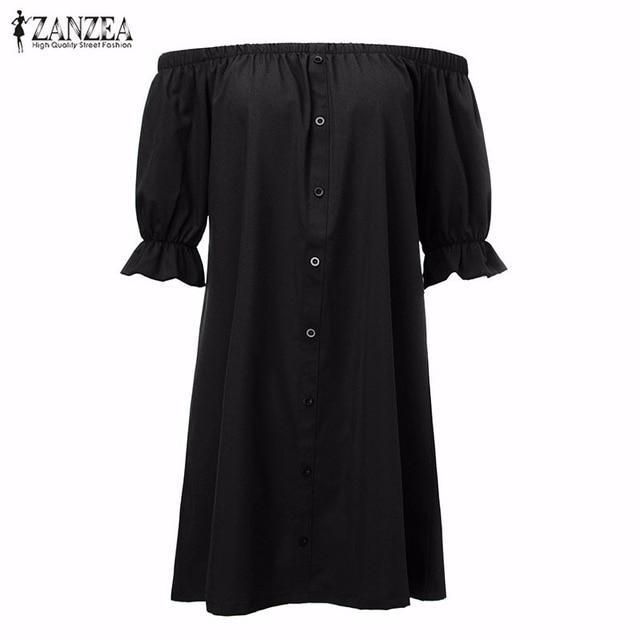 ZANZEA Women Vestidos 2018 Sexy Off Shoulder Mini Party Dress Casual Loose Half Sleeve Strapless Dresses Long Tops Plus Size